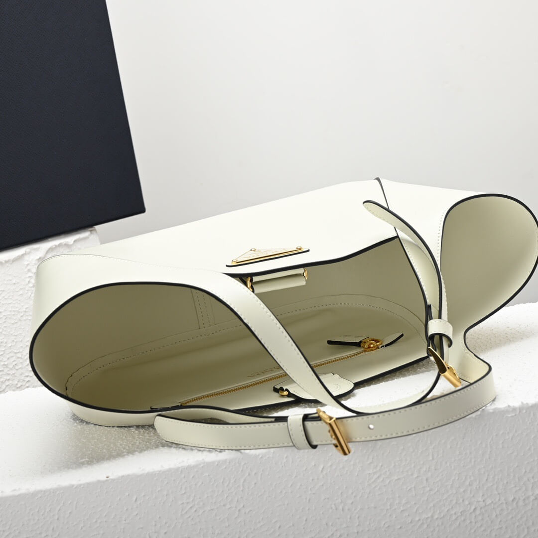 White Prada Medium Enamel Triangle Logo Leather Tote Bag (high-end grade)