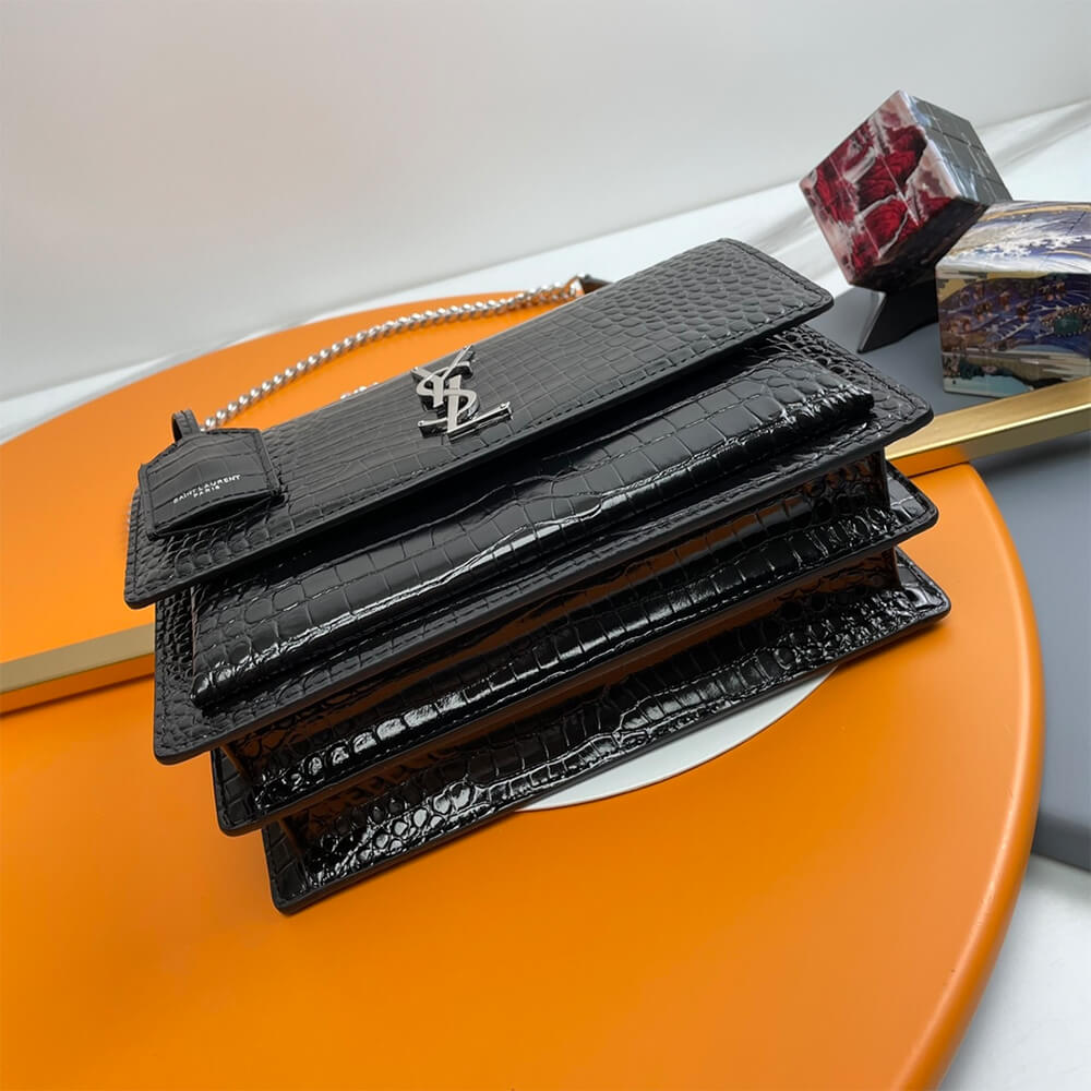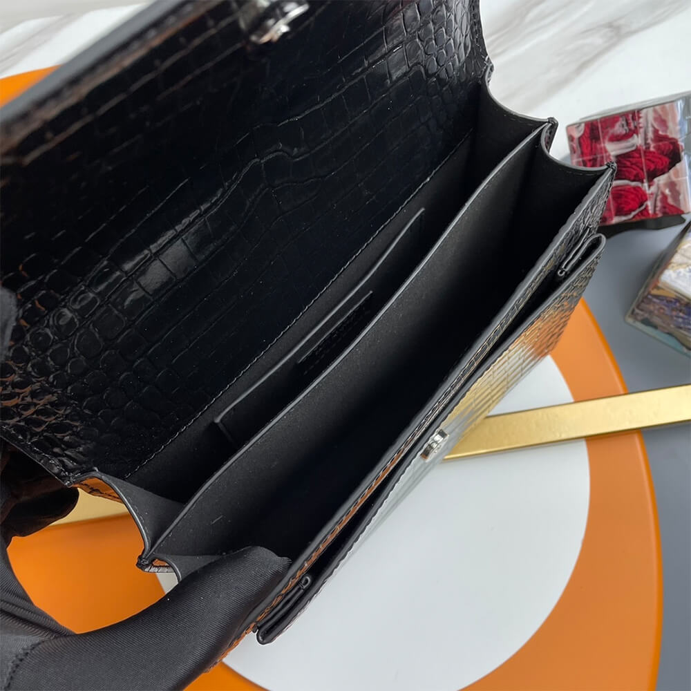 Super high quality 1:1 mirror copy replica YSL Crocodile-embossed leather SUNSET Medium