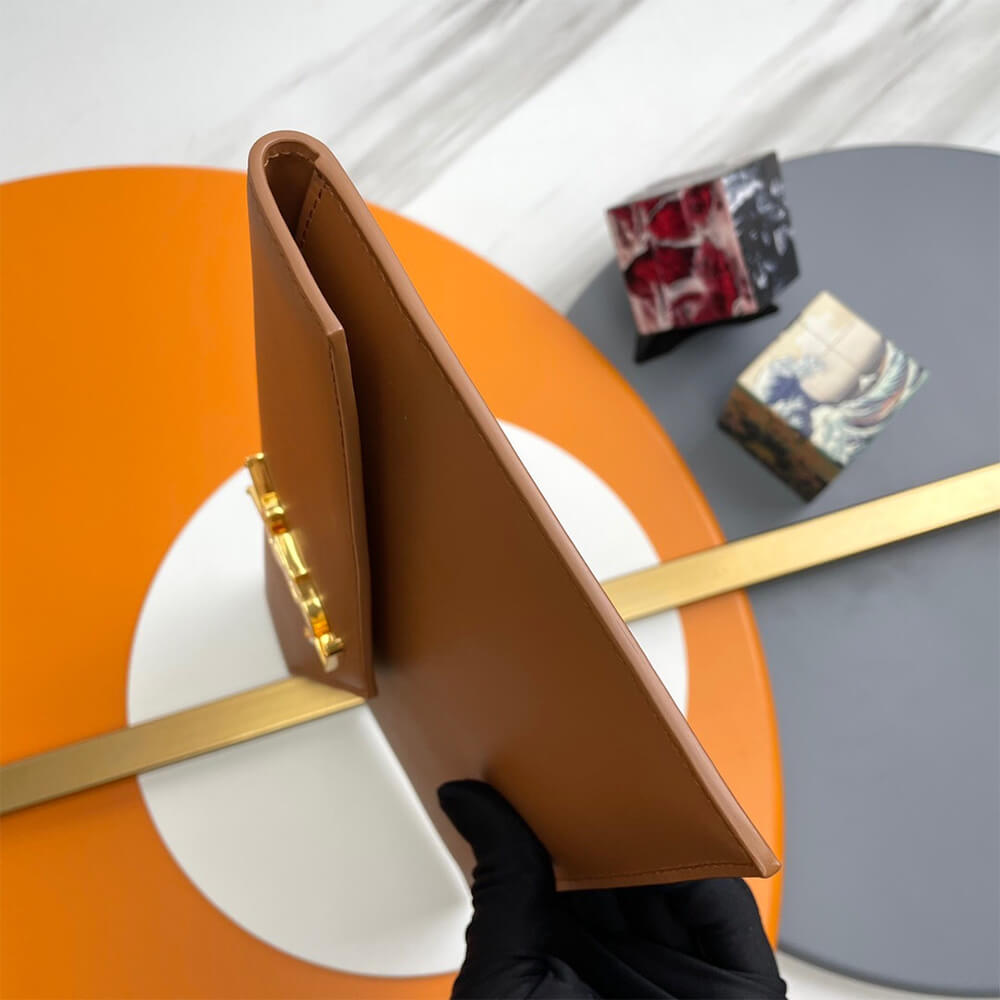 taupe YSL UPTOWN POUCH IN GRAIN DE POUDRE EMBOSSED LEATHER